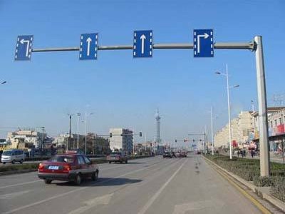 依照施工圖紙和裝置的要求,裝置公路交通標(biāo)志桿和交通流量成直角,在彎道的道路上,從交通信號的視點(diǎn)確認(rèn)交通流的方向。懸臂和門框標(biāo)志是沿筆直軸歪斜2度。路旁邊的